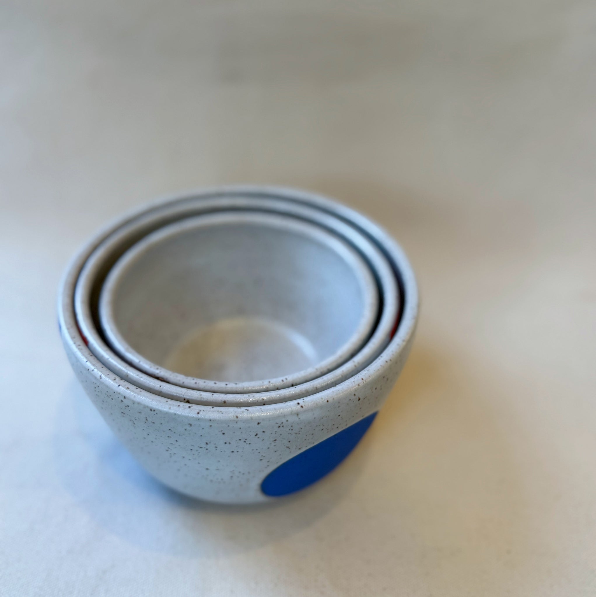 Nesting sets come with three bowls that fit nicely inside each other in these sizes: